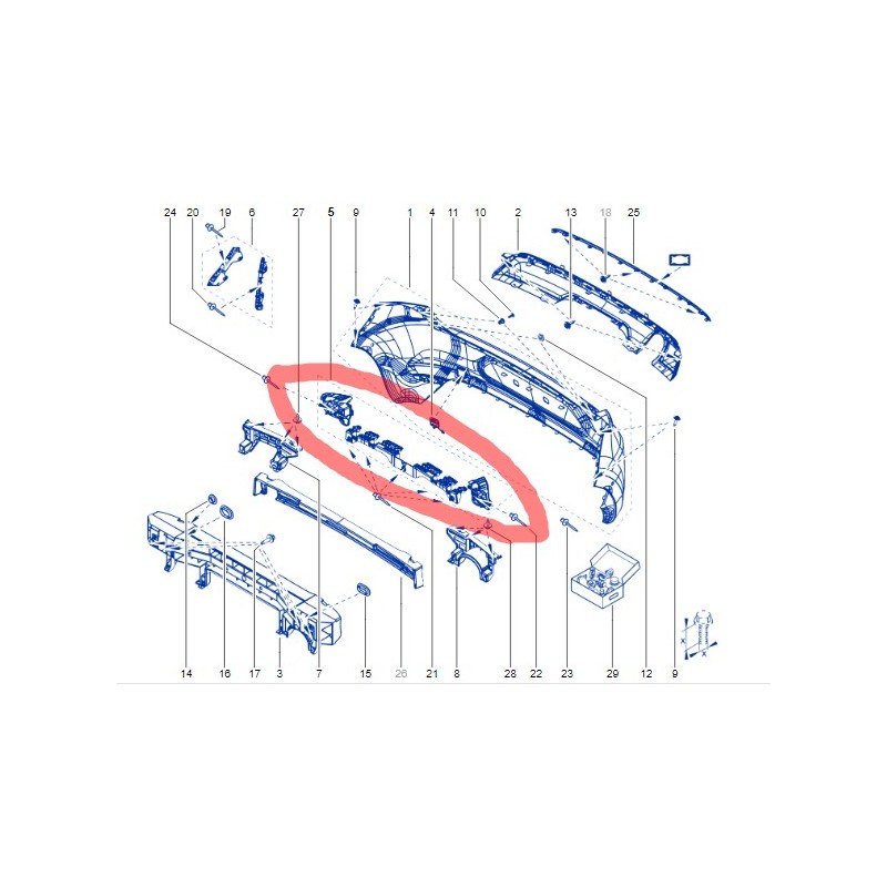 Kit support, pare-chocs arrière central